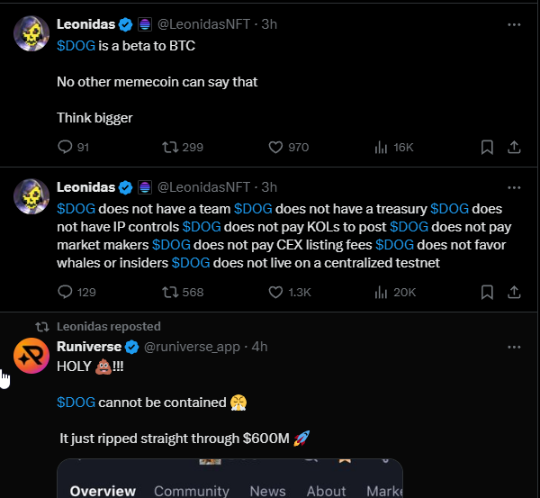2. Community-Driven Hype: Like all successful meme coins, $DOG thrives on its community. Social media platforms like X (formerly Twitter) have been buzzing with discussions, memes, and trading tips, driving organic interest.