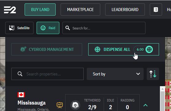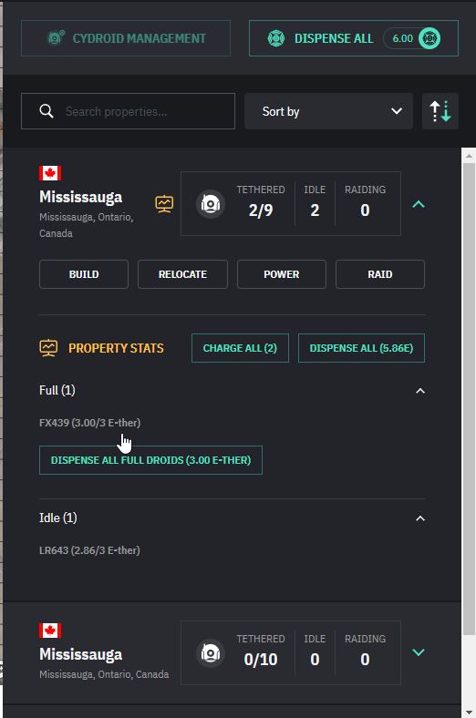 3. Once your Cydroids are powered up and ready to go, you can send them out to raid ether from neighboring lands. Click the checkbox or checkboxes to select the Cydroid you wish to send out on a raiding mission, then scroll down to the Property section and click on the property that you want those Cyrdoids to raid. Tap on the Raid button and they will be sent on their way.