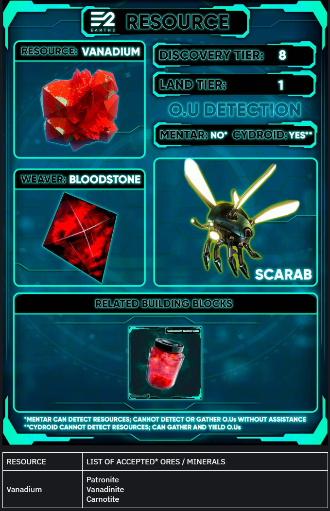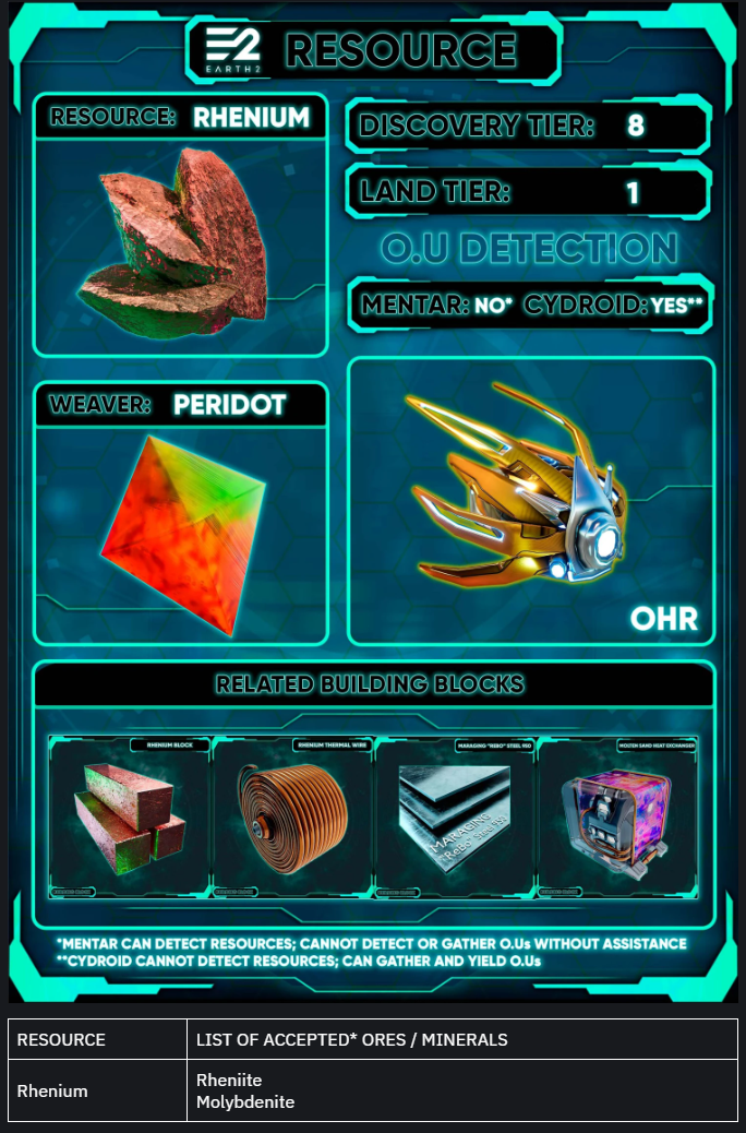 Earth 2 Resource Information Uses: Chromium is vital for Weaver: Sunset Jewel required for priming Cydroid: Venator Related Building Blocks: Mentar can detect and gather ...